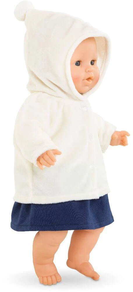 Brrr ! C’est l’hiver; il fait froid… Le Manteau Nuit Étoilée est le vêtement d’extérieur indispensable pour les grands poupons de 36 cm. Le manteau en fausse fourrure est muni d’une capuche à pompom chaude et douillette. Confectionné dans des matières douces et résistantes; il est facile à enfiler grâce aux bandes auto-agrippantes adaptées à la dextérité des petites mains.