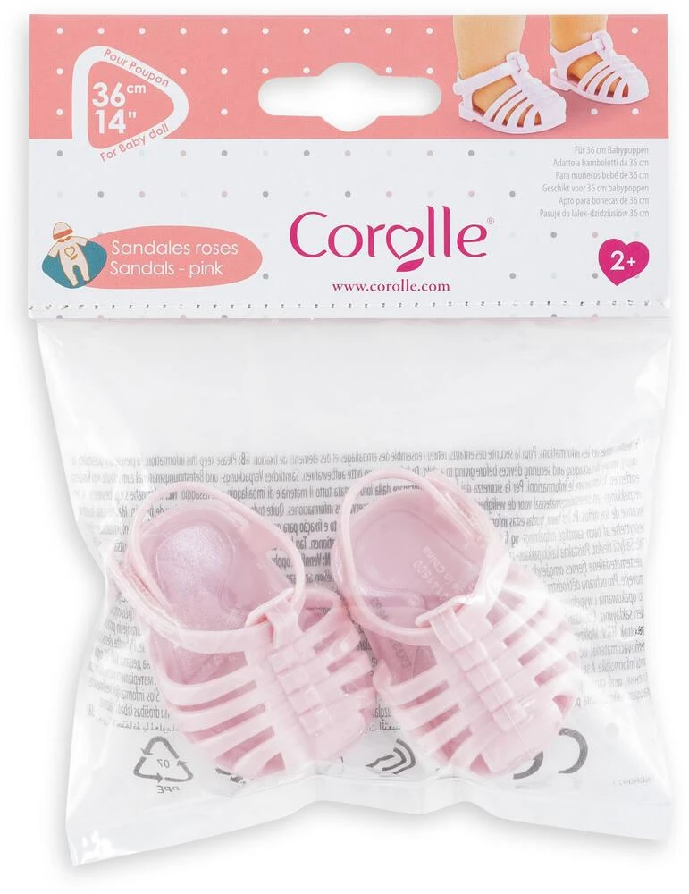 Sandales roses pour grand poupon de 36cm. Les grands poupons disposent d’une collection variée de vêtements et d’accessoires dans la gamme mon grand poupon Corolle pour jouer et faire comme les grands. Dès 2 ans.