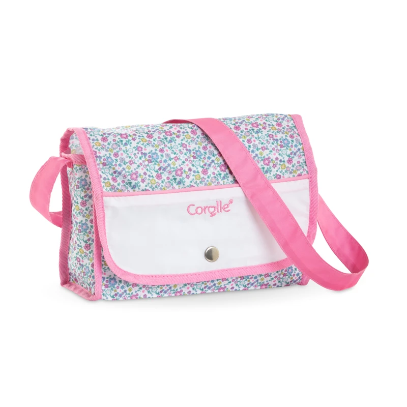 Le landau fleuri est accompagné d’un sac en bandoulière assorti afin de transporter facilement tout le nécessaire de son poupon et d’un panier de rangement amovible pour y déposer toujours plus d’accessoires encombrants.