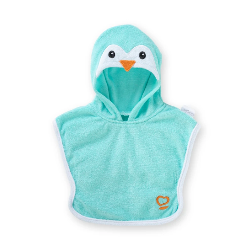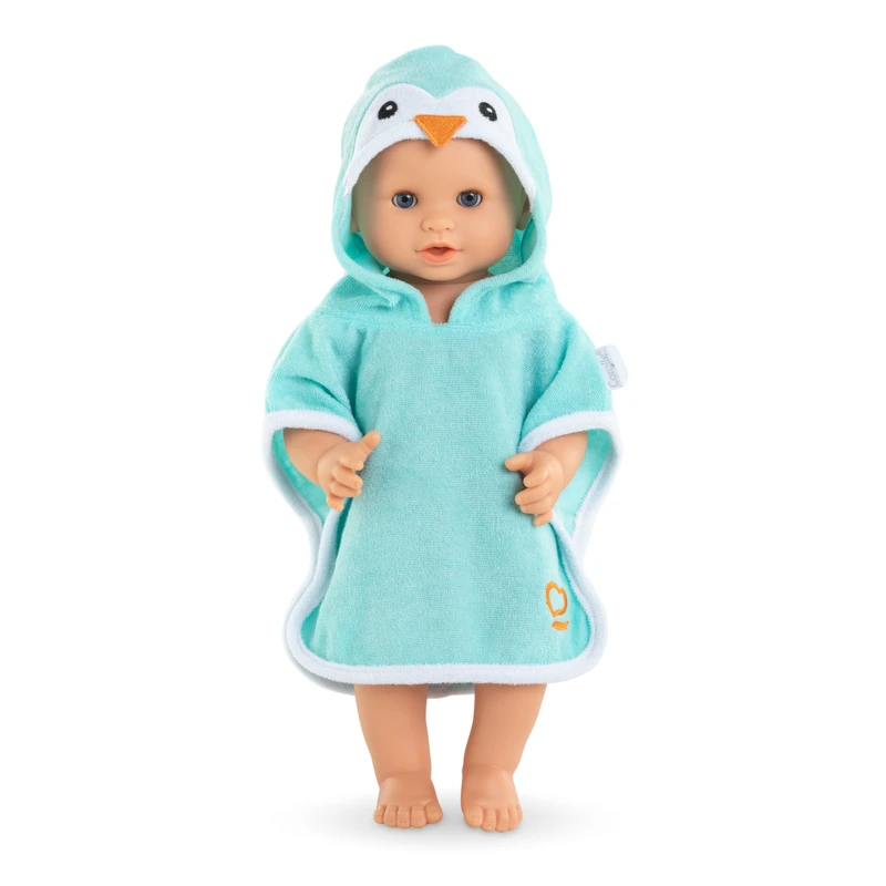 Cette amusante cape de bain à la capuche « tête de pingouin » séchera et réchauffera les petits poupons de 36 cm bébés Bain et bébé Calin à la sortie du bain.