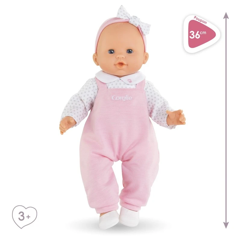 Elle mesure 36 cm, une taille parfaitement adaptée aux petits bras de l’enfant pour la câliner, la materner et reproduire les gestes qui font devenir grand.