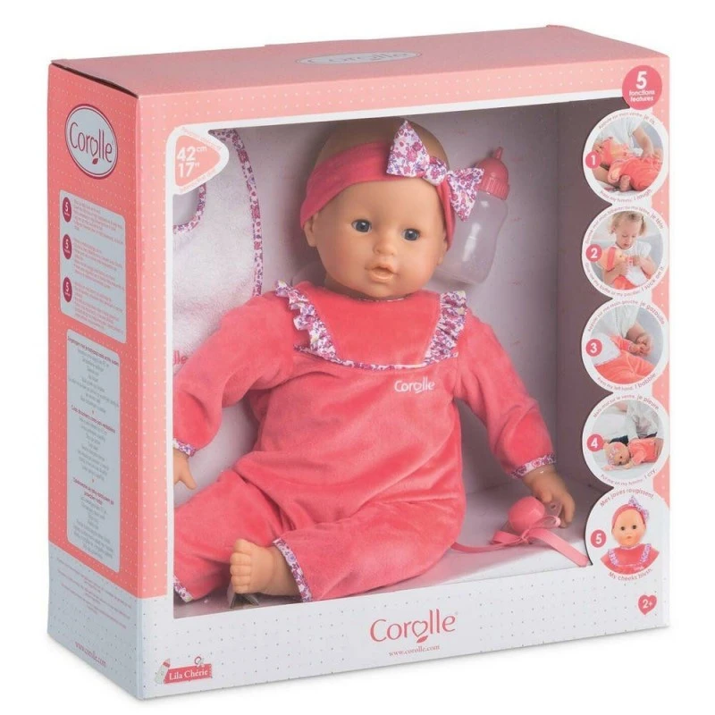 Lila Chérie est un grand bébé de 42 cm de la marque Corolle pour jouer et faire comme les grands avec 5 fonctions :