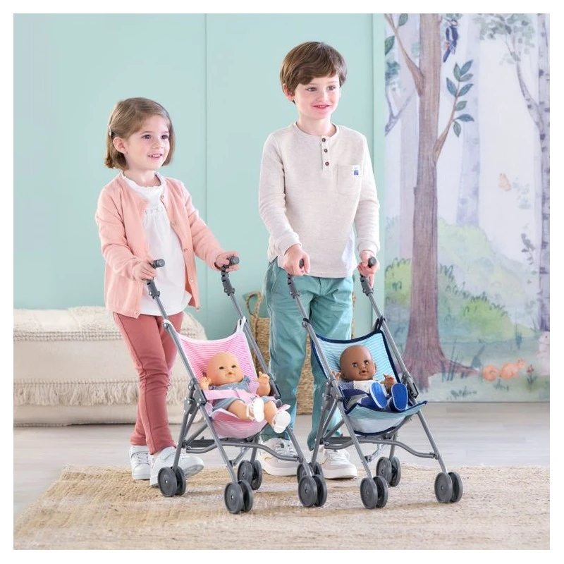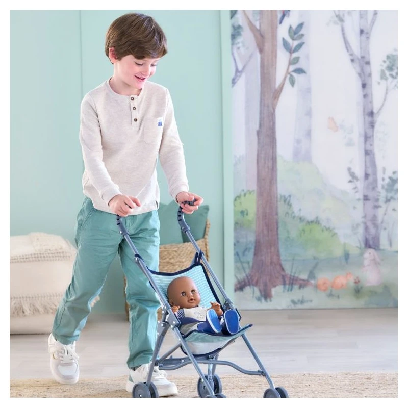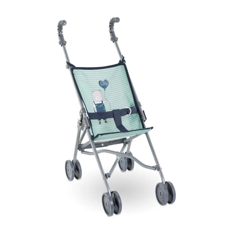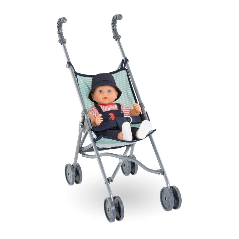 La poussette canne sauge est idéale pour emmener son grand poupon de 36 à 52 cm en balade ! On assied son poupon dans la poussette, une jambe de chaque côté de la ceinture et on l’attache : hop c’est parti !