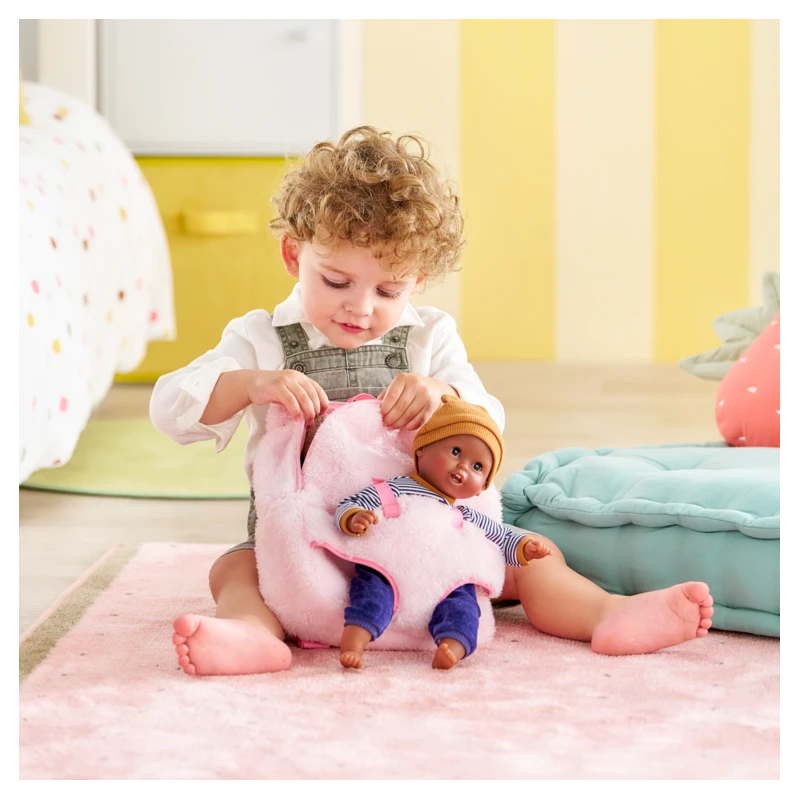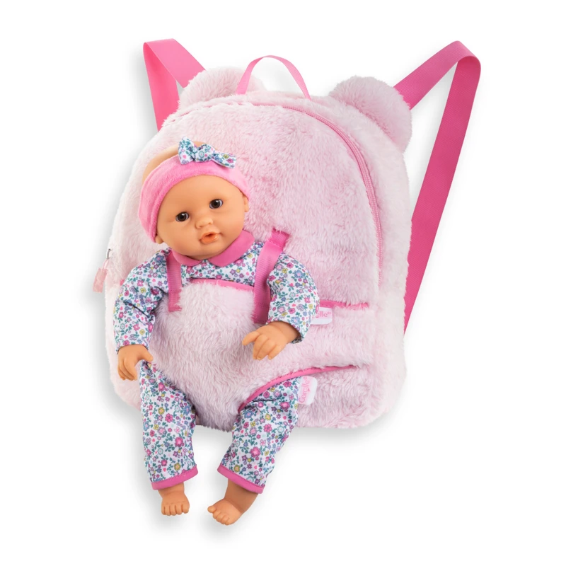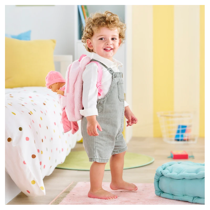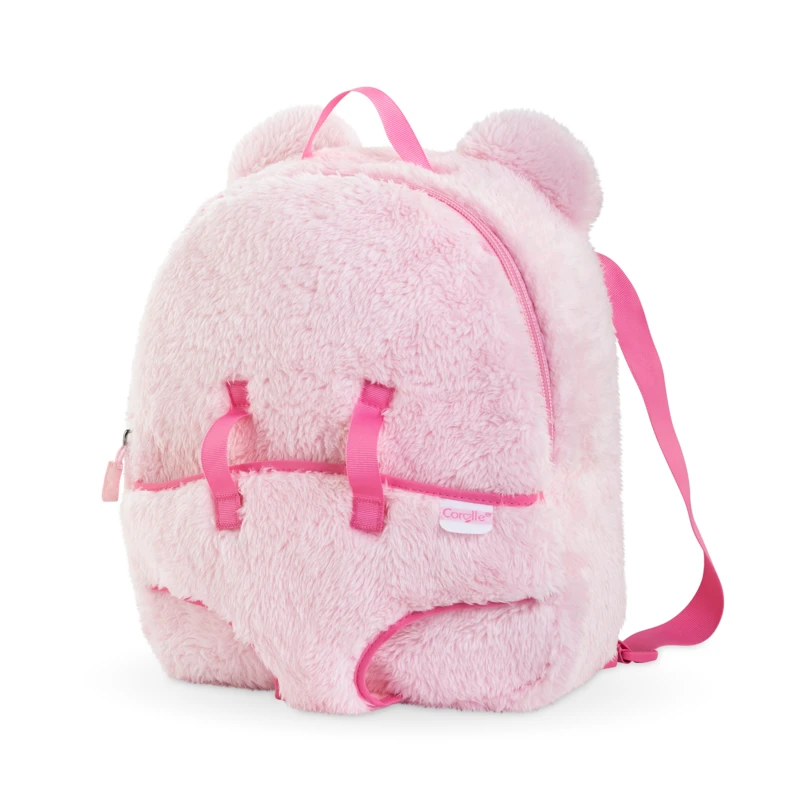 Le Sac à Dos Porte-Poupon Peluche Rose est très pratique, il permet de partir découvrir le monde avec son petit poupon de 30 cm bien calé grâce aux passants équipés de bandes agrippantes, et de ranger toutes ses affaires.