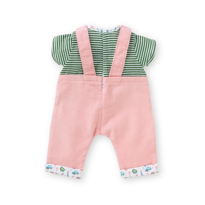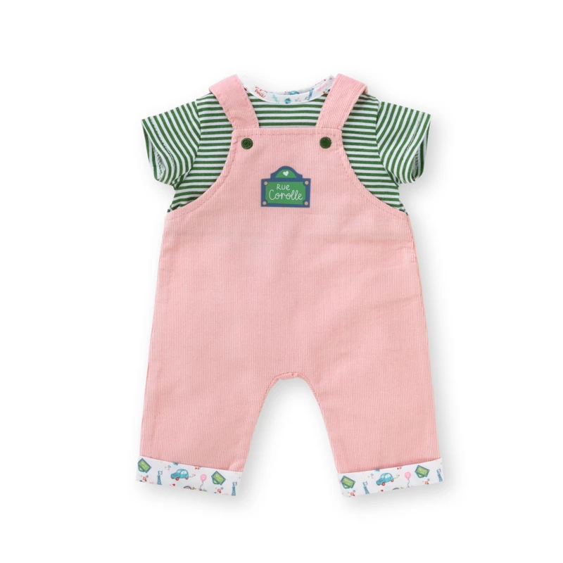 Pour une tenue décontractée, l’ensemble T-shirt et Salopette Week-end à Paris est le vêtement idéal pour les petits poupons de 30 cm.