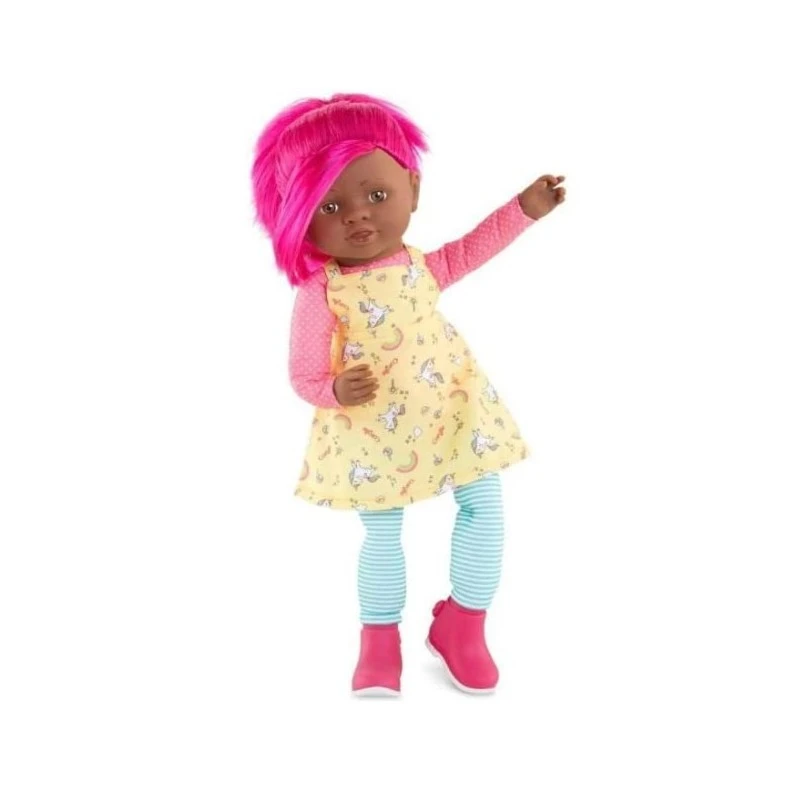 POUPEE FUN ET COLOREE : Céléna est une poupée habillée d?une robe à l?imprimé très tendance, avec des licornes et des arcs en ciel. Ses cheveux roses et ses taches de rousseurs lui donnent un côté très espiègle. POUPEE AU VISAGE EN VINYLE ET YEUX FIXES : Céléna a un visage et des mains en vinyle très doux qui sentent bon la vanille. Elle a de jolis yeux fixes marron. CORPS SOUPLE FACILE À MANIPULER : Ses longs bras et jambes interminables permettent à l’enfant de lui faire prendre toutes les positions. CARACTÉRISTIQUES : Hauteur 40 cm. Yeux fixes. Matières douces. Poupée à collectionner. Dès 3 ans. CRÉATION FRANÇAISE : Un style à la française imaginé depuis 1979 à Langeais, au c?ur de la Touraine.