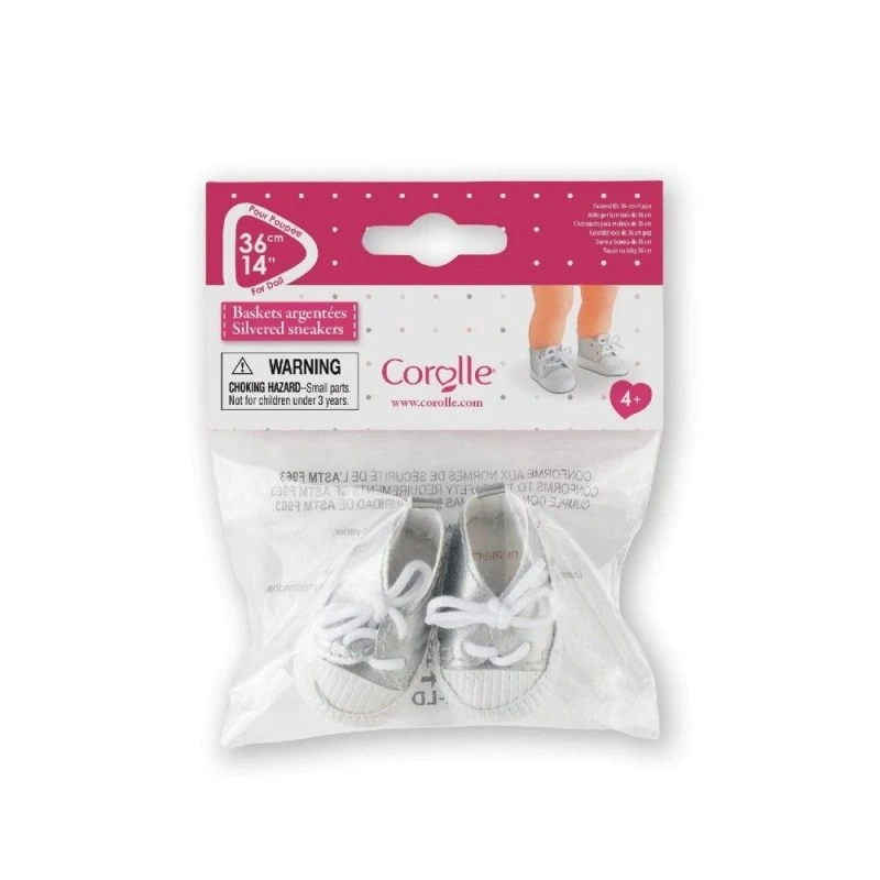 Cette jolie paire de baskets argentées est idéale pour donner une touche tendance aux tenues des poupées Ma Corolle.
