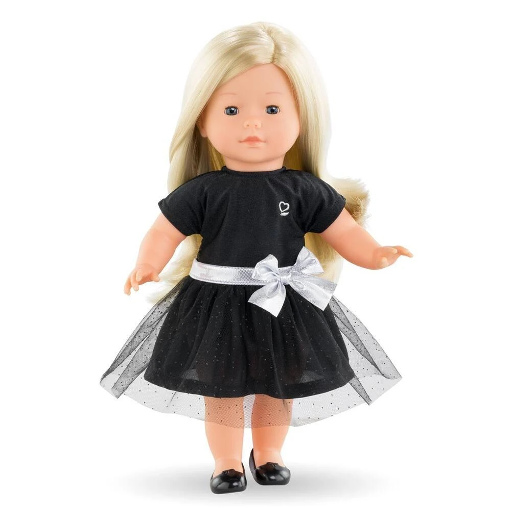 Robe de soirée noire manche courte, indispensable pour les événements chics des poupées ma Corolle 36 cm.