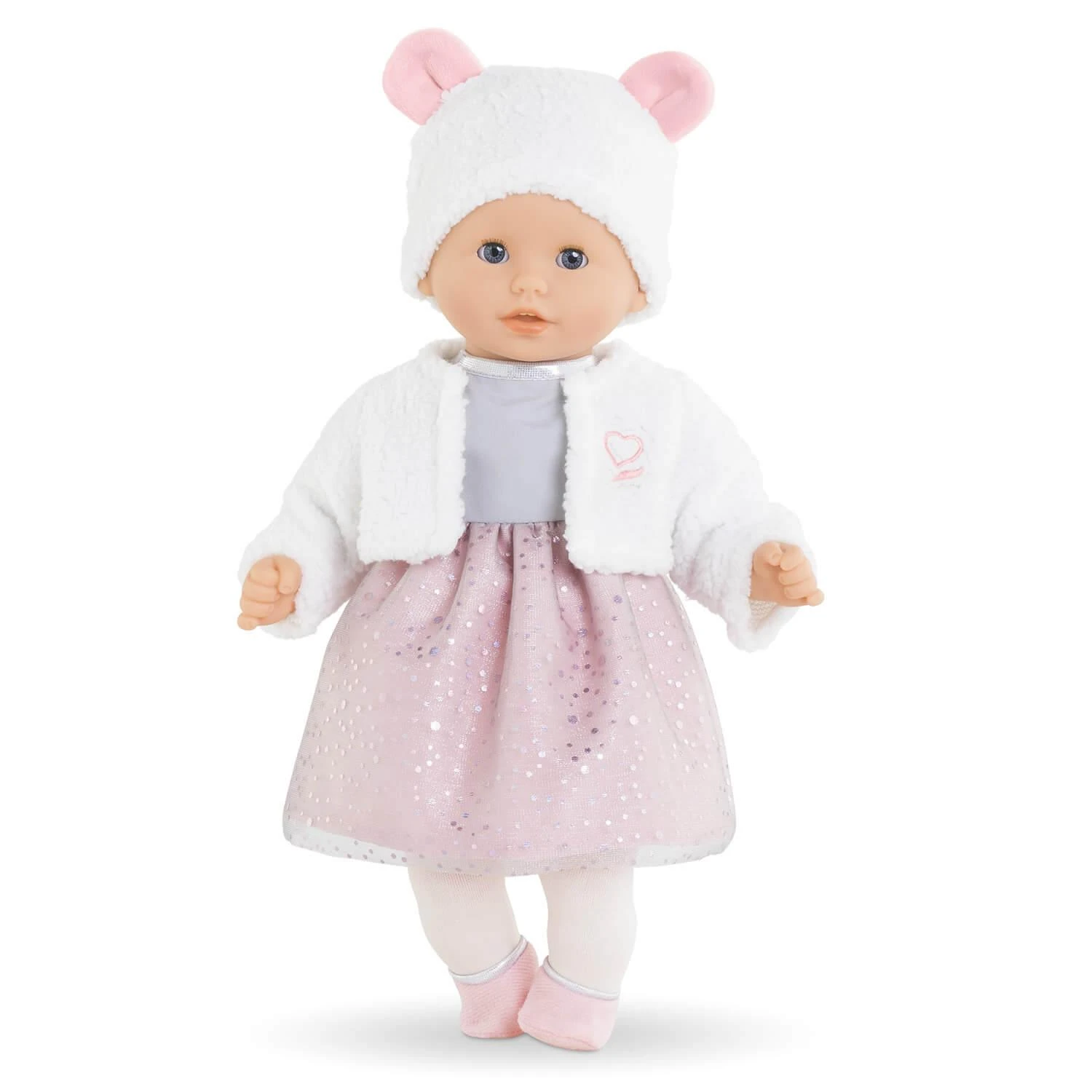 Bébé Calin Marguerite Soir de Fête dispose d’une collection variée de vêtements et d’accessoires dans la gamme mon premier poupon Corolle pour pouponner pour la première fois.