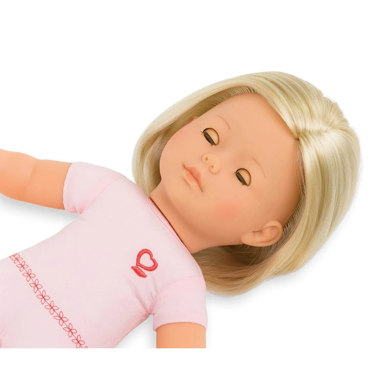 Cette poupée adorera aussi que vous coiffiez sa longue chevelure soyeuse couleur soleil à l’aide d’un peigne ou d’une brosse jouet. Les cheveux se lavent simplement avec du savon mélangé à de l’eau tiède.