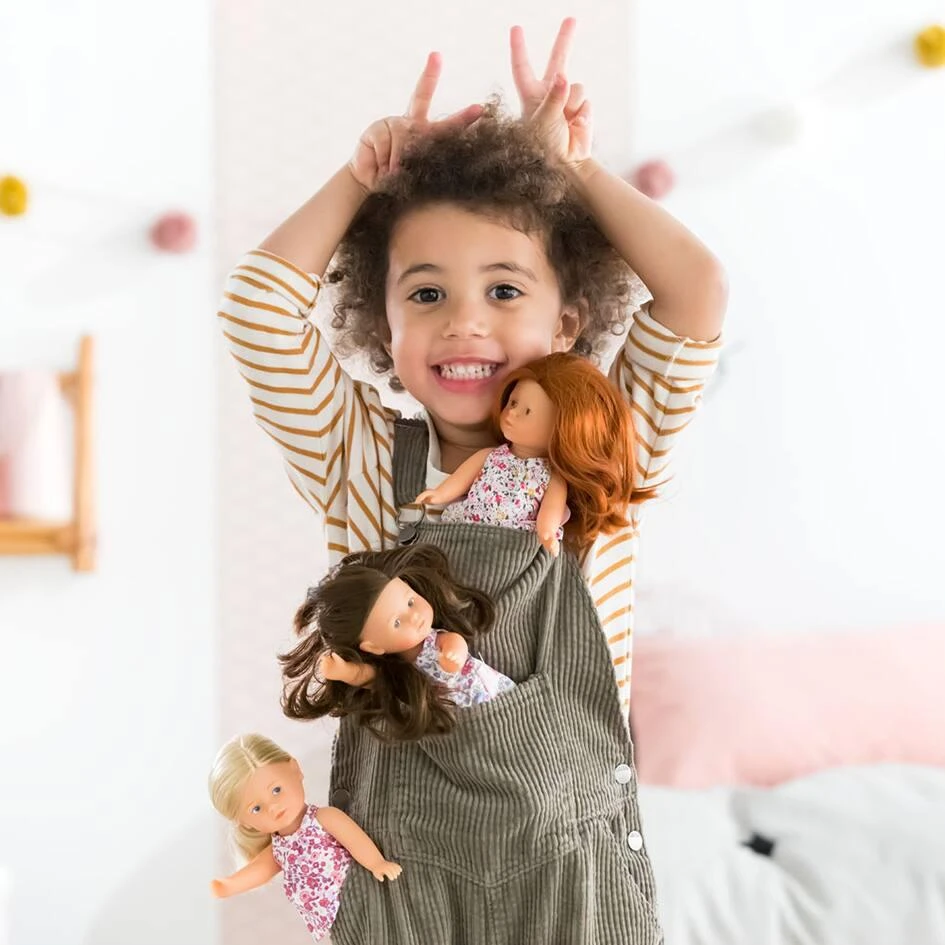 Mini Corolline Ruby est une petite poupée de 20cm « prête à offrir ». Elle a un corps tout en vinyle doux au toucher et à la délicate senteur de vanille. Ses yeux noisette sont peints sur son visage constellé de tâches de rousseur. Elle a des cheveux longs roux et soyeux pour faciliter le coiffage. Elle est habillée d’une robe fleurie « trois trous »; d’une culotte et d’une paire de chaussures moulées assorties. Mini Corolline Ruby est le cadeau idéal pour un goûter d’anniversaire; une surprise; …Cette petite poupée nomade se glisse facilement dans un sac ou dans un cartable pour accompagner votre enfant tout au long de la journée.