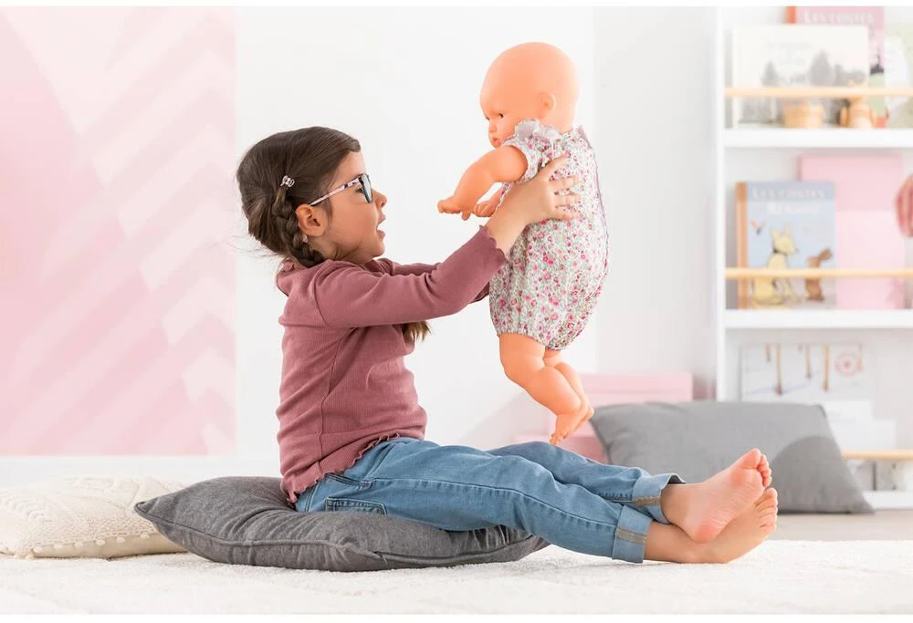 Bébé Chéri Jardin en Fleurs est un grand poupon Corolle pour jouer et faire comme les grands. Il est grand comme un nouveau-né ! Il mesure 52 cm et s’habille avec des vêtements de vrais bébés (taille 3 mois) ou avec des créations « maison ». Il est habillé d’une barboteuse fleurie avec des volants sur les épaules. Son visage, ses bras et ses jambes, à la délicate senteur de vanille, sont en vinyle doux au toucher. Son corps est souple pour faciliter ses mouvements. Avec ses yeux dormeurs, il fait dodo quand on le couche sur le dos. Bébé Chéri dispose de nombreux accessoires mon grand poupon pour imiter les gestes du quotidien et s’inventer des scénarios de jeu multiples et variés.