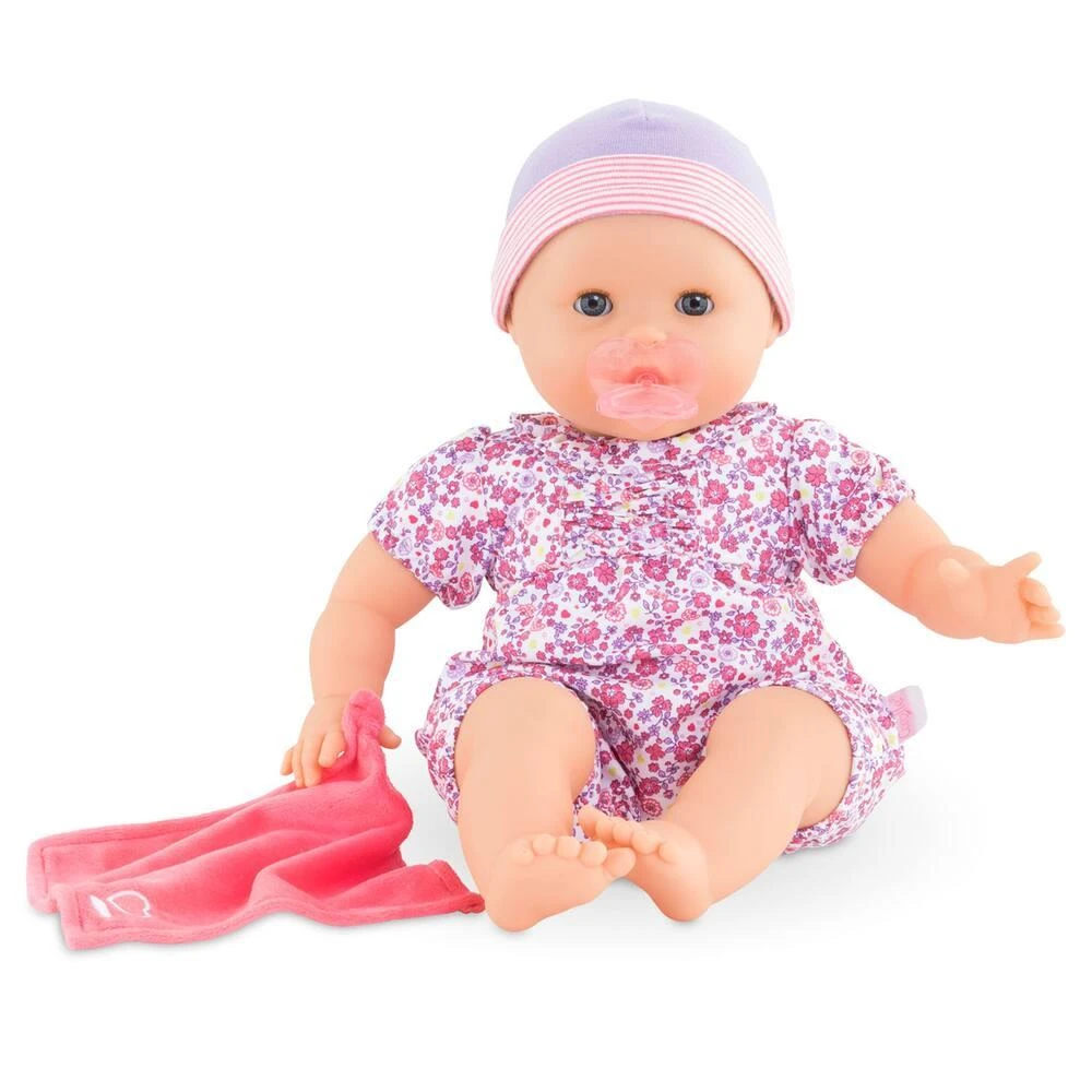 Émilie Suce son Pouce est un coffret avec un grand poupon pour jouer et faire comme les grands. Avec ses deux accessoires; l’enfant appréhende et rejoue les rituels du coucher. En mettant son poupon au dodo; l’enfant lui donne son doudou-lange et sa tétine en s’initiant ainsi aux étapes qui le conduisent; en les reproduisant; vers le doux pays des rêves… Émilie mesure 36 cm; une taille parfaitement adaptée aux petits bras de l’enfant pour la câliner; la materner et imiter les gestes qui font devenir grand.Son visage; ses bras et ses jambes; à la délicate senteur de vanille; sont en vinyle doux au toucher. Son corps est souple pour faciliter ses mouvements. Son pouce peut se maintenir dans bouche comme si elle suçait son pouce ! Avec ses yeux dormeurs; elle fait dodo quand on la couche sur le dos. Elle est habillée d’un pyjama fleuri ainsi que d’un bonnet assorti. Émilie dispose d’une collection complète de vêtements et d’accessoires mon grand poupon Corolle pour imiter les gestes du quotidien et s’inventer des scénarios de jeu multiples et variés. Elle ne peut pas porter de chaussures.