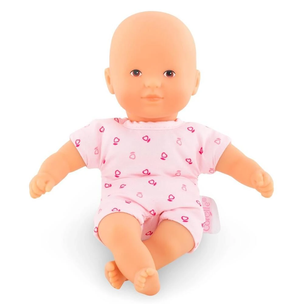 Mini Calin Rose est un mini poupon de 20 cm léger et facile à emmener partout. Son visage, ses bras et ses jambes, à la délicate senteur de vanille, sont en vinyle doux au toucher. Yeux peints.