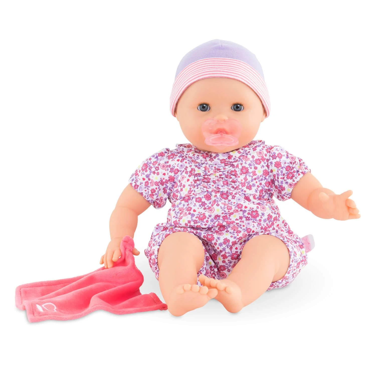 Son visage, ses bras et ses jambes, à la délicate senteur de vanille, sont en vinyle doux au toucher. Son corps est souple pour faciliter ses mouvements. Son pouce peut se maintenir dans bouche comme si elle suçait son pouce ! Avec ses yeux dormeurs, elle fait dodo quand on la couche sur le dos.